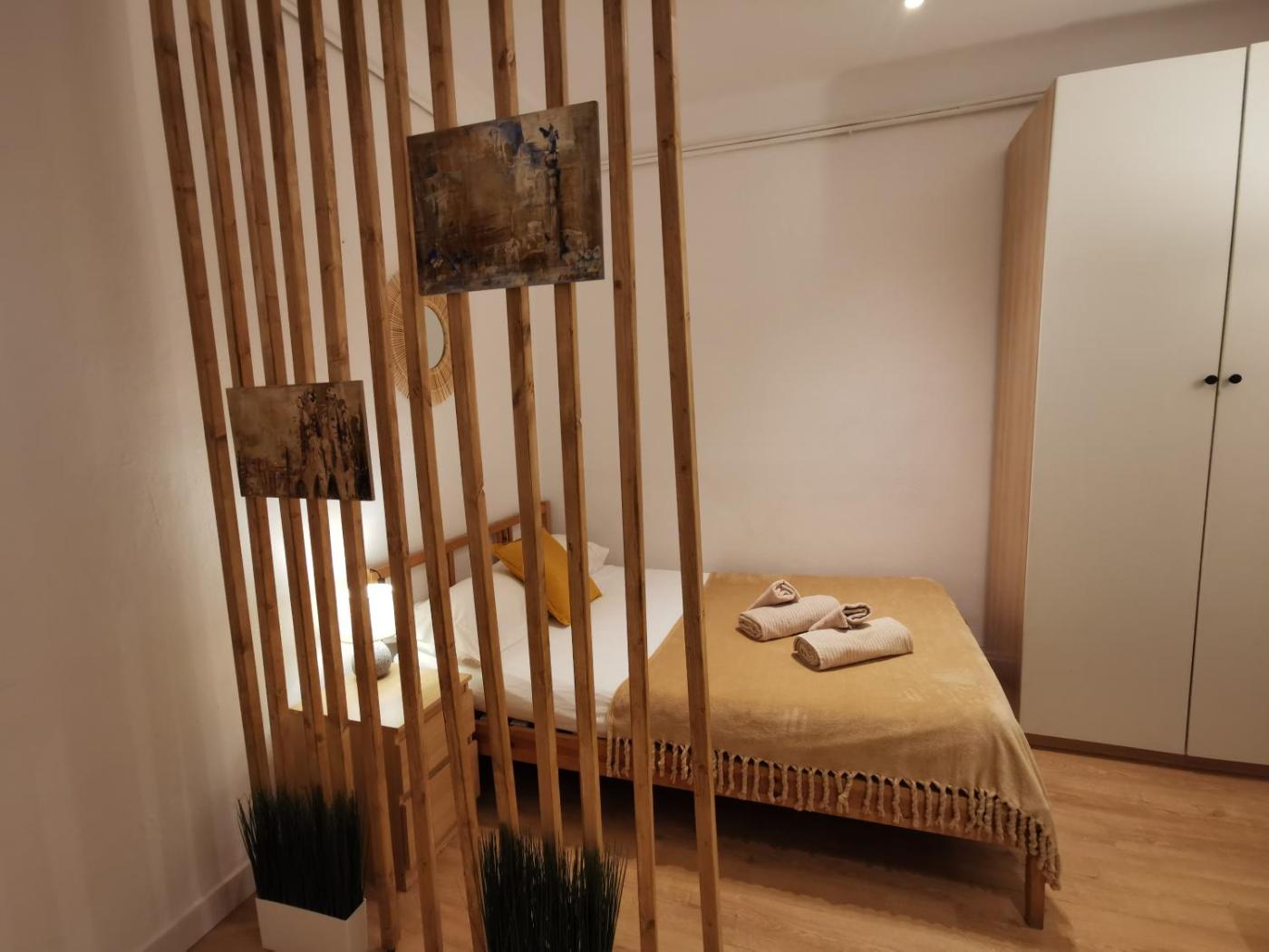 Apartament z 1 sypialnią. The apartments kitchen is available for cooking and storing food. The apartment features air conditioning, a washing machine, heating and a flat-screen TV. The unit has 1 bed. Apartament - 2 osobowy. Powierzchnia pokoju ok.: 30 mkw.