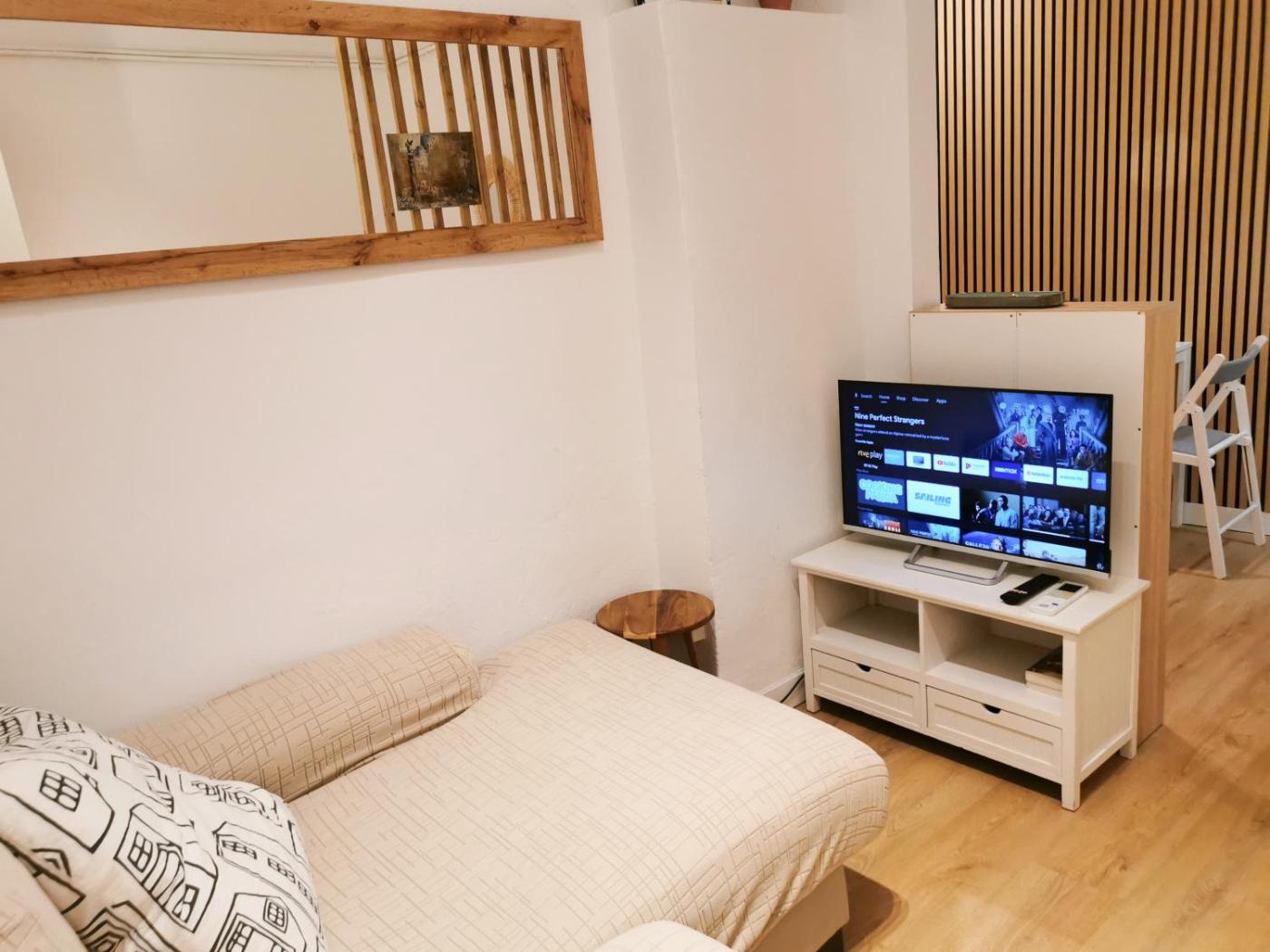 Oferta apartamentu obejmuje sypialnię (1), telewizor z płaskim ekranem oraz klimatyzację.