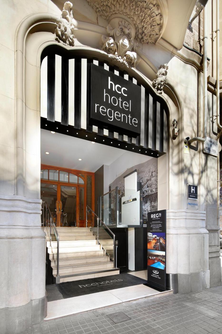 Hotel HCC Regente mieści się w tradycyjnym, modernistycznym budynku. Został on niedawno odrestaurowany z zachowaniem oryginalnych elementów. Obiekt HCC Regente znajduje się przy ulicy Rambla de Catalunya.
