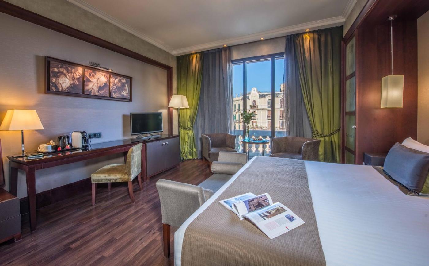 Hotel Barcelona Center położony jest w Barcelonie, 400 metrów od alei Passeig de Gràcia i 15 minut spacerem od placu Plaza Catalunya. Bezpłatne udogodnienia obejmują saunę, niewielką siłownię oraz wannę z hydromasażem na dachu.