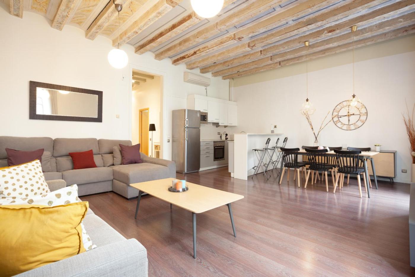 Apartament z 4 sypialniami – Ronda Sant Pere. This 5-bedroom apartment features a spacious living room, free WiFi and a fully equipped kitchen. The open-plan lounge has stylish decor, a TV with DVD player and comfortable sofas, while the kitchen includes a coffee machine, oven and washing machine. The apartment also has 2 bathrooms. Electric scooters are available. Apartament - 10 osobowy. Powierzchnia pokoju ok.: 140 mkw.