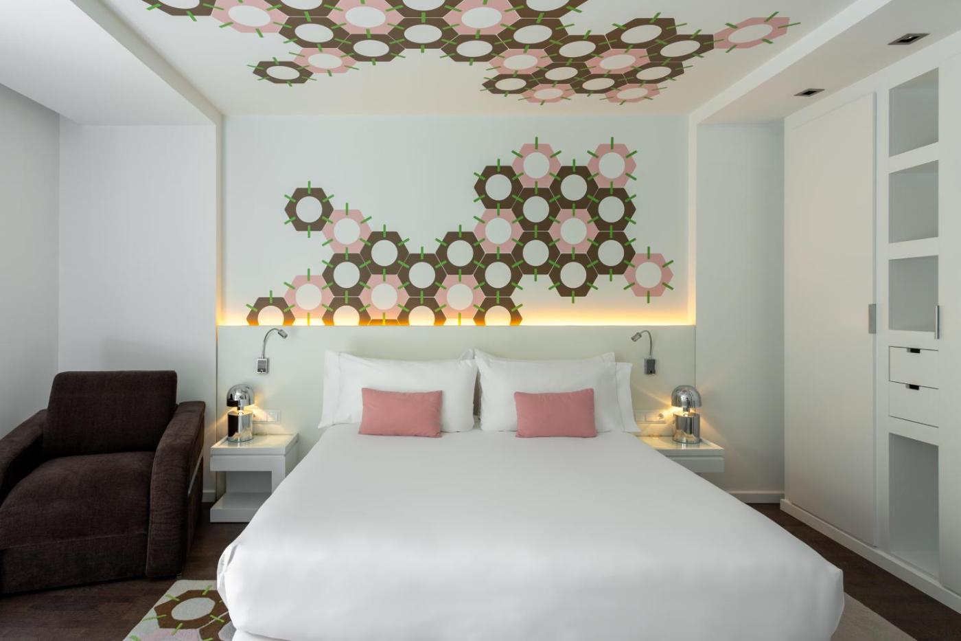Pokój Dwuosobowy z 1 lub 2 łóżkami i balkonem. Pokoje tej kategorii dysponują balkonem. Z niektórych roztacza się widok na ulicę Carrer de Mallorca, a z innych – na wewnętrzne patio. Pokoje są urządzone w minimalistycznym stylu, a ich ściany zdobią niebanalne tapety winylowe. Są one wyposażone w 1 łóżko podwójne lub 2 łóżka pojedyncze. Do dyspozycji Gości jest także sejf, minibar, telewizor z płaskim ekranem oraz portami USB i HDMI, biurko oraz Wi-Fi. Pokoje obejmują również łazienkę z wanną lub prysznicem. Pokój Dwuosobowy z 1 lub 2 łóżkami - 2 osobowy. Powierzchnia pokoju ok.: 22 mkw. ;