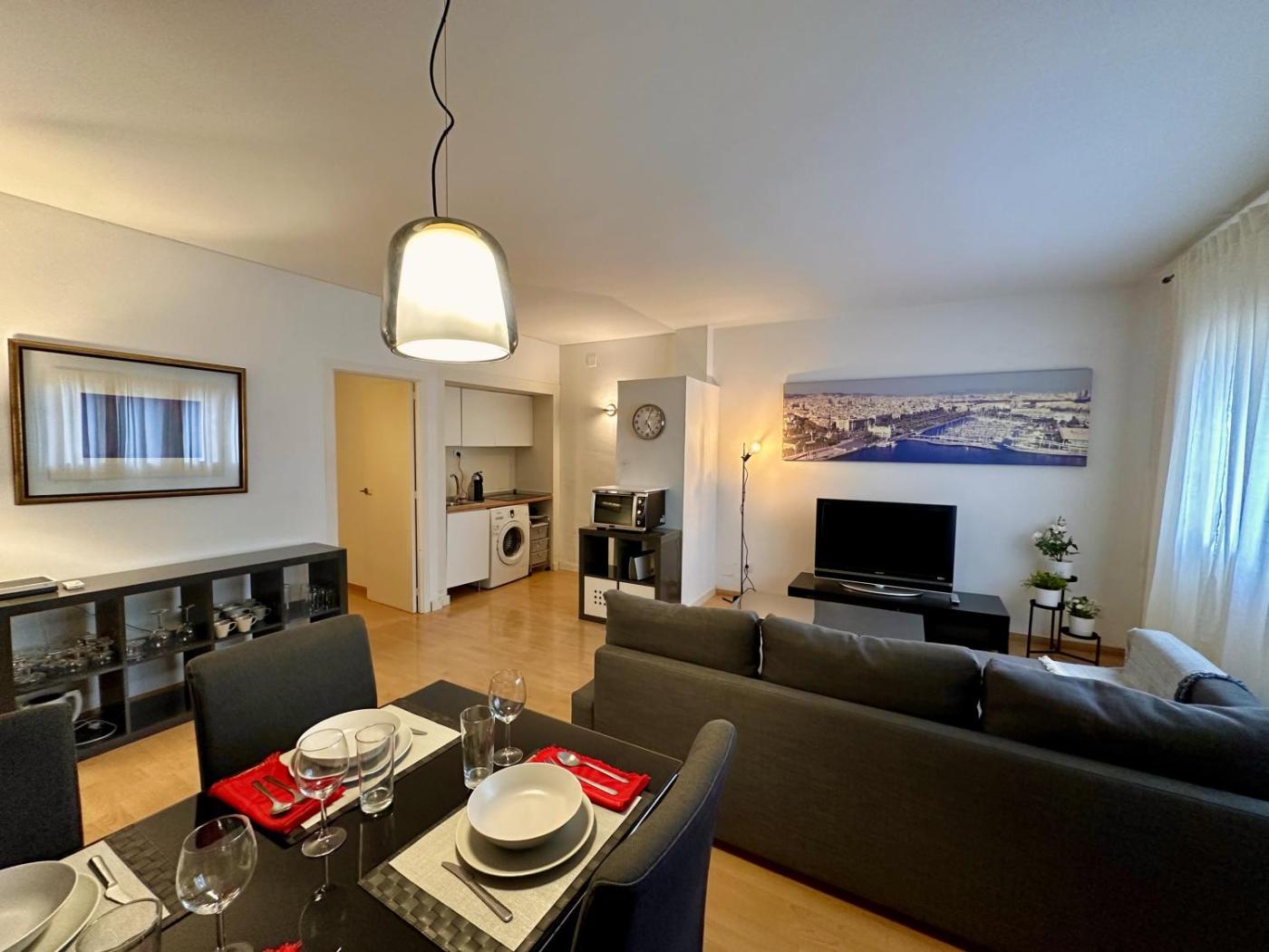 Oferta apartamentu obejmuje sypialnię (1), salon, kuchnię z pełnym wyposażeniem, w tym lodówką i ekspresem do kawy, a także łazienkę (1) z prysznicem oraz suszarką do włosów. W apartamencie zapewniono ręczniki i pościel.